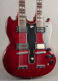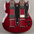 This 1999 Epiphone double-neck is a great-playing guitar that sounds fantastic and is set up well. The pickups in the 6-string neck have been upgraded to DiMarzios, giving it a strong, clear tone. The strap buttons have also been replaced. The guitar is in excellent condition overall, with only light signs of normal use. Includes the original hard case.