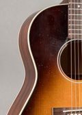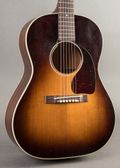 This 2025 Gibson Murphy Lab Ultra Light Aged 1942 LG-2 in Sunburst is a careful recreation of an early wartime slope-shoulder design, built with a focus on light construction and a responsive feel. It features a compact body with a warm, dry tonal character, supported by a spruce top and mahogany back and sides. The Ultra Light Aged treatment introduces subtle checking and light wear, giving the instrument a gently broken-in appearance without heavy distressing. This example was ordered without the banner headstock decal, offering a cleaner, more understated look at the headstock. It has a direct, woody voice with clear fundamentals and a controlled low end, staying balanced across a range of playing dynamics.