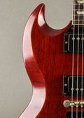 This 1965 Gibson SG Standard is in excellent condition for its age, with a recent refret that brings new life to its original electronics and classic feel. It features the slim nut width and neck profile typical of the era—polarizing for some, but ideal for players who appreciate flexibility in their hand. The patent number humbuckers deliver the thick, rich tone you'd expect, with great clarity and punch. The finish remains clean, showing some dings and light wear, and aside from the new frets and nut, the hardware is original. The electronics appear to have been rewired at some point, likely during a pickup swap, but all components are now original and fully functional. A strong example of what makes the mid-’60s SG such a compelling and iconic player—complete with its original hardshell case.