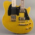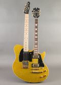 This Carparelli 2B1 combines a Les Paul style guitar and Tele style guitar on the same build for a wide world of tonal variety. Its gold sparkle finish stands out and catches the light, and its maple body provided excellent sustain. Cosmetically, it remains in good condition with light player wear and a few finish dings.