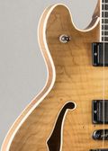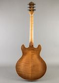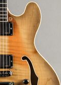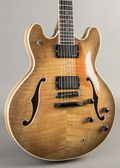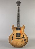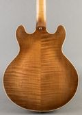 Built by the renowned Kent Everett, this EV1300 is a purpose-built semi-hollow electric featuring figured tonewoods. Its finish has faded over time leaving a red silhouette under the pick guard location. There are some hardware holes remaining, although some have been plugged. The neck was pulling up, but has since been reglued by our repair team and a new strap button was installed.