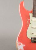 The Fender Custom Shop 1962 Stratocaster Heavy Relic comes finished in Tahitian Coral—a custom color that walks the line between playful and worn-in, with heavy relic work that exposes the personality beneath the paint. Deep checking, edge wear, and hardware aging give it the look of something that’s been through years of use without apology. The slimmer '60s “C” neck profile and slab rosewood board keep things familiar in the hand, with a fast, broken-in feel that makes it easy to get around. Hand-wound pickups deliver the dry, woody response typical of early-'60s Strats, with just enough mid push to keep things forward in a mix. It’s a loud finish, but the feel is all business. Comes with the COA and OHSC.
