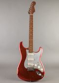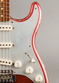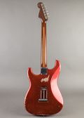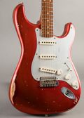 This 2012 Fender Custom Shop ’57 Stratocaster Relic in Candy Apple Red offers a distinctive twist with its full rosewood neck. The relic treatment is handled with restraint, giving the guitar the feel of a well-used instrument without pushing the wear too far. Its contours and overall build stay close to late-’50s Strat tradition, with a lively finish that brings some contrast to the darker neck. A thoughtful take on a familiar model, it balances vintage style with a few uncommon features that set it apart.