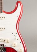 This 2010 Fender Custom Shop ’65 Mahogany Stratocaster brings a distinctive voice to the familiar mid-’60s template. Its translucent red finish highlights the mahogany body, giving the guitar both a striking look and a warm, focused response. The neck carve and overall feel stay true to the era, with clean NOS detailing throughout. It’s a thoughtful take on a classic design, offering subtle variations that set it apart without losing the character that defines a mid-’60s Strat.