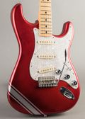 This Fender Custom Shop '69 Stratocaster CC is a unique player with reverse matching headstock and a chunky U neck. A silver racing stripe has been added and the original hardware was replaced with chrome style. It has some finish wear on the front, back and headstock.