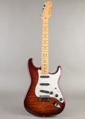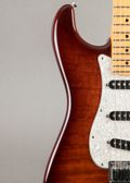 This 2000s Fender Custom Shop Stratocaster pairs a figured maple top with an ash body, all highlighted by a transparent sunburst that shows the wood’s character. The combination brings a bit of visual depth while keeping the familiar Strat outline intact. Its neck has a comfortable, straightforward feel, suitable for a wide range of playing approaches. Sounds great and plays great - a distinctive take on the Strat template with an emphasis on thoughtful wood choices.