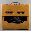 This 1955 Deluxe has a wonderful vintage look, developing a warm amber hue to its lacquered tweed covering. It features the rare 5D3 circuit, which immediately preceded the 5E3 in 1955 and marks the first Deluxe to use 9-pin tubes instead of octals. The result is a unique voice that retains some of the octal-era midrange bark, while offering added refinement thanks to the 12AX7 phase inverter.