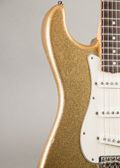 This Fender Custom Shop Stratocaster was built by Master Builder Greg Fessler and crafted to ’64 specs, topped off with a striking gold sparkle finish. It plays beautifully, with a comfortable feel and lively response. The pickups have been changed to a Seymour Duncan set: SSL-1 with beveled pole pieces in the neck, SSL-1 with non-beveled pole pieces in the middle, and an SSL-5 in the bridge. The guitar has also been rewired with CTS pots, and the strap buttons have been replaced.