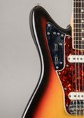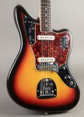 This 1965 Fender Jaguar is a very clean mid-60's example of the model. It has light wear around the edges and some buckle rash but on the whole remains in very good shape. Its original pickups sing with vintage jangle and the pearl dots and binding are '65 staples. The original frets are a bit low and do cause some light buzzing in a few spots, so a refret by the next owner would help playability, but for the sake of originality we've chosen to leave it as is.