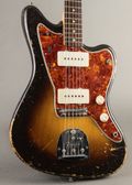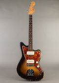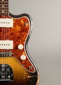 This 1960 Fender Jazzmaster in Sunburst wears decades of wear with character and has been heavily modified over the years, resulting in a truly unique player’s guitar. The body was routed for Strat-style wiring and coated with shielding paint, with the original metal shielding removed (but included in the case). As a consequence of the routing, it’s notably lightweight for a Jazzmaster, making it especially comfortable over longer sessions. Electronics are a mix of CTS and Centralab pots, with the rhythm circuit replaced and a pair of Seymour Duncan Quarter Pounder pickups installed—offering a thick, high-output tone that’s a long way from vintage spec, but undeniably fun. Refretted with a replacement nut, it plays well and feels lively, with all the patina and edge of a well-used original. Comes with the OHSC.
