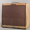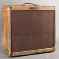 The 5E5-A Fender Pro is a somewhat rare model, as it was produced in lower quantities compared to many other Tweed-era amps. One of its more interesting traits is how closely it relates to the Low-Powered Twin—when you compare the schematics, you’ll notice they share a very similar preamp design. The same holds true for other “E” designation 6L6 circuits, such as the 5E6 Bassman, 5E7 Bandmaster, and 5E8 Twin (aside from some duplicated channels on the front end). What may appear to be heavy wear on the cabinet is actually black paint showing through in various areas of the tweed. It may have been sprayed and later stripped, though it’s difficult to say for certain.Internally, the amp has seen very few changes over the years, with only the power cord and electrolytic caps replaced. One bias resistor has also been changed, but otherwise all of the original resistors and Astron coupling caps remain intact, preserving that unmistakable Tweed Fender sound. It should also be noted that despite the tube chart saying "5E5" this is in fact a "5E5-A" circuit, which is quite different and frankly more desirable.