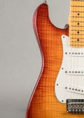 This Fender American Select Stratocaster elevates a timeless classic with striking craftsmanship and refined performance. A flame maple top pairs with a figured maple neck for standout looks, strength, and tonal depth, and a 9.5"–12" compound radius ensures smooth playability across the entire neck. Custom-wound Select-series pickups add extra energy and clarity without sacrificing authentic Strat character. Finished with a contoured heel and premium details throughout, this American Select Stratocaster blends collectible appeal with a responsive, and player-focused feel. This guitar remains in very good condition, with normal, honest playwear such as minor dings and light scratches. Includes a custom G&G hardshell case.