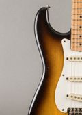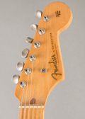 This Fender Stratocaster blends a 1957 body with a 1959 neck, finished in Sunburst and showing honest age throughout. The neck has heavy lacquer checking and a worn-in feel that tells its own story, with the kind of patina that only comes from decades of real use. It remains mostly original aside from a professional re-fret, preserving the essential character while keeping it playing clean and smooth. The black-bottom pickups deliver the chime, snap, and balance you'd expect from late-’50s Fender tone. A vibey, great-sounding Strat with just the right amount of wear and history. Comes with the OHSC and vibrato arm.