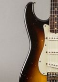 This 1960 Fender Stratocaster features a vibrant three-tone Sunburst finish with beautiful lacquer checking throughout—subtle and even, giving the guitar a naturally aged look that perfectly complements its vintage character. It remains mostly original and in excellent condition, showing only light wear beyond the graceful aging of the finish. The slab rosewood fingerboard and early-’60s “C” neck profile make for a comfortable, broken-in feel, while the original pickups serve up classic Strat tone—clear and dynamic, with plenty of chime and warmth. It plays very well with the original frets and sounds exactly as it should. A striking and well-preserved example with just the right amount of vintage personality. Comes with the OHSC.