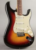 This 1963 Fender Stratocaster is one of the cleanest examples to come through our shop, and remains 100% all original! A slim neck profile offers lightning fast playability along its rich Brazilian rosewood fingerboard, and its original frets still have plenty of life. The neck has never been removed, and we have opted to keep it that way, leaving the decision to remove the neck up to its next owner. Electronics all check out with pots dating to the 24th week of 1964. The plastics are in good shape, however the 3-way switch is a little bit, but still functional. Its beautiful burst is perfectly checked and only shows signs of player wear in a handful of finish dings around the edges of the body. Original back plate, screws and tremolo arm are included in the case. Get your hands on this incredible example of Pre-CBS bliss!