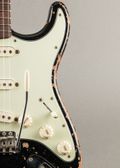 This body (only) refin 1964 Fender Stratocaster sounds like it has built in reverb. This is an incredibly resonant Strat! The body was refinished in black lacquer a while back with a sanding sealer, under the paint, that had a bit of brown color to it. Long story short, it makes the body look a bit like it's mahogany. The body is alder. The neck has the original finish and logo. The guitar has a great recent refret, a new nut and the fretboard was leveled a little bit; so the guitar plays perfectly. The pickups are original and sound absolutely like reference examples in each position and also in the in-between spots. The neck is shaped more like a '63 with a nice full feel to it; it's definitely on the larger side as you play up the neck. The guitar comes with its original no-logo black Tolex case.