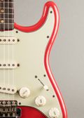 This is a very cool 1964 Fender Stratocaster in a Dakota Red refinish. The neck finish and logo on this guitar are original, only the body has been refinished. Great sounding and playing Strat with a recent setup by Carter Vintage Guitars. Excellent feeling neck on this guitar that has more of a '63 profile as you move up the neck. The bridge pickup has been rewound slightly hotter than what it probably started out as. All the pickups are gray bobbins with the date, "10-28-64" written in pencil on the neck bobbin. The pickguard, knobs, pickup covers and all hardware are original. The guitar comes with the trem bar and bridge cover in a non-original black hardshell case.