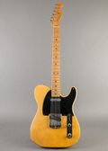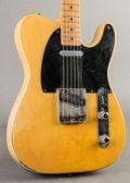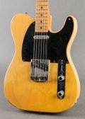 A blackguard telecaster is a holy grail for electric players; luckily, this example is one of the more approachable. At one time, this telecaster had a B16 bigsby installed, which required 4 screws (two to the sides of the bridge and two by the strap button). The bridge's pickup route was also widened rather novice like, as was the bottom of the blackguard that surrounds the bridge. It is hard to know the timeline that these modifications were made, but it is now in its mostly factory set-up. The modifications also brought along tinted overspray to the bottom half of the face of the guitar (where the bigbsy was), and the shelf of the nut required spliced in maple and a refinish of the headstock. The original electronics and re-fretted neck make for an incredible playing experience, with the fat, demanding tele tone you'd hope for in the pickups. Comes in a modern hardshell case and early 50s poodle case with busted out end.