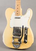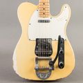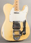 This 1973 Fender Telecaster is a well-used example with a clear, cutting response and a strong midrange presence - equipped with a factory Bigsby. The ash body and maple neck contribute to a tight low end with a bright, articulate top, keeping note definition intact across the strings. It has the direct, immediate character associated with early-’70s Telecasters, with a dry attack and focused sustain. Maintenance over time includes a replacement tone pot and knob, along with a fret level. The frets are on the lower side but remain serviceable. Cosmetically, it remains in player-grade territory, with heavy finish checking and visible arm wear through the top. It shows consistent use throughout, giving it a broken-in feel while remaining structurally sound.