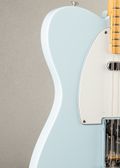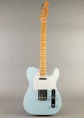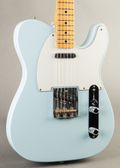 This 2019 Fender Vintera '50s Telecaster comes in a standout Sonic Blue finish and is in excellent condition. It’s been thoughtfully upgraded in a few places, including Fender Nocaster pickups for a more open, dynamic tone and Gotoh compensated saddles to dial in more accurate intonation. American Vintage tuners offer a smoother feel and period-correct look, and it comes housed in a teardrop-style case that suits it well. The neck has that familiar '50s carve—substantial but comfortable—and the setup makes for an easy-playing instrument. A sharp-looking Tele with the right tweaks to bring out its full potential. Comes with the original gig bag in addition to the teardrop case.
