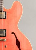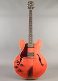 This 2022 Custom Shop ES-335 was purchased somewhere along the way in its journey to the mod shop, hence its unique spec and configuration. It's finished in a nice Watermelon red with a gold finger tailpiece. Equipped with Custombuckers, it has growling, powerful tone that can be subdued to accommodate those with jazz persuasions. Cosmetically, there is some light relic work, but only mild player wear aside from that.