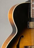 This 1992 Herb Ellis ES-165 is a formidable jazz box with deep body resonance and mellow tone. Equipped with a 490R, it offers plenty of sound with a nice comfortable neck profile. It features an interesting factory "happy accident" as the headstock logo was placed atop a finished over inlaid Gibson Crown head stock. The inlaid logo and crown have shrunk over time revealing their silhouette beneath the Herb Ellis and Gibson silk screens. Otherwise, it remains in excellent condition cosmetically.