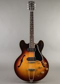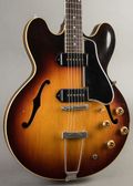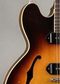 This 1959 Gibson ES-330 in Sunburst is a prime example of Gibson’s late-’50s hollowbody craftsmanship. Featuring a fully hollow thinline body, dual P-90 pickups, and a warm, resonant acoustic voice, it delivers rich, woody tones with classic vintage bite. The chunky late-’50s neck profile offers a comfortable, solid feel, while the original Sunburst finish adds to its timeless appeal. Lightweight and responsive, this ES-330 is a soulful player’s guitar. It has been refretted, a strap button was added to the horn, and the bridge is a replica replacement.