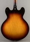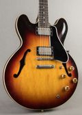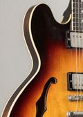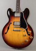 This 1959 Gibson ES-335 in Sunburst presents with the hallmark features of the model, including its semi-hollow construction and original sunburst finish. The guitar has received a refret by our in-house repair team and shows several period and later alterations, including black-painted f-hole edges and replaced tuner buttons. It has a low neck angle more commonly associated with late-’50s examples, and the bridge was factory-ground on the bottom. Cosmetically, it remains in very good condition for its age other than the aforementioned modifications.