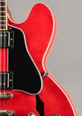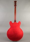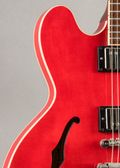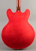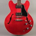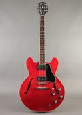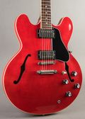 This 2018 Gibson ES-335 in Cherry is a semi-hollow design built around a laminated maple body with a center block, giving it a balanced response with a controlled low end and clear note separation. The overall tone leans warm through the midrange, with a smooth top end that stays defined under a heavier attack. The set neck construction adds sustain while keeping the feel responsive across the fingerboard. The cherry finish highlights the grain beneath the laminate, paired with a classic double-cutaway shape and traditional hardware layout. The original Memphis pickups provide a consistent, even output that complements the natural resonance of the body. It remains a clean example with only mild player wear.