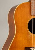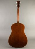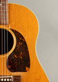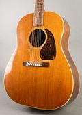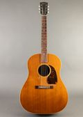 Perhaps the most desireable post-Banner Gibson model, the extremely rare script logo J-50 has a very famous artist in its historical roster -- Bob Dylan. There were very few J-50s made in 1947, so one of those winding up in the hands of Bob is quite special. Script logo Gibsons are a wonderful marriage of wartime and post-war specs, the rectangular bridge makes it Banner like, but the truss rod in the less full neck bring it forward. Lore goes that J-50's, in natural finish, cost more than their J-45 counterparts due to higher quality spruce that wouldn't be able to hide behind a sunburst finish. What we do know is that it sounds incredible and can pull off the "Free-Wheelin'" sound, whether it is strummed like Masters of War or finger-picked like Don't Think Twice.