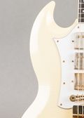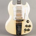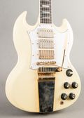Jimi Hendrix is widely regarded as one of the most innovative guitarists of the rock era, and this limited edition Gibson Custom Shop 1967 SG Custom pays tribute to the right-handed guitar he famously played left-handed on The Dick Cavett Show on September 9, 1969. Finished in a Murphy Lab Aged Polaris White with aged gold hardware, it captures the look and feel of that iconic instrument. This example is all original and in excellent condition. Includes the original hardshell case.