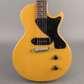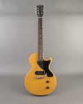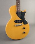 This Gibson Les Paul Junior TV Model is finished in the "Lime Mahogany" finish, which has affectionately come to be known as TV Yellow. This example is in excellent vintage condition with only light dings throughout, and mild checking and buckle rash. The bridge and tuners have been replaced, but otherwise this guitar remains all original. It has that P-90 growl used on a wide variety of genres, and a comfortable neck that starts at a V and transitions to a C.