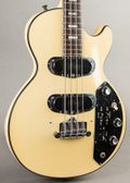 Built during Gibson’s late-’70s run of low-impedance basses, the Triumph features a solid construction and electronics designed for a wide tonal range, with its original circuitry intact. The Alpine White finish shows light checking throughout along with a number of small dings concentrated around the edges. The original bridge cover has been removed but is included in the case, preserving the option to return it to its factory appearance.