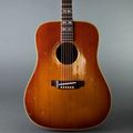 From 1969 we have a well played and well loved Gibson SJ in its original Cherry Sunburst finish. This guitar has had the original bridge saddle slot filled and replaced with a new saddle, replaced truss rod cover, and an added Fishman pickup. This guitar sounds fantastic and is the perfect strummer for singer-songwriters.