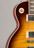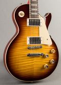 This 2021 Gibson Wildwood Spec R0 Les Paul is finished in Iced Tea Burst and built to Wildwood’s ’60 reissue specifications. It features a figured maple top over a solid mahogany body with period-correct plastics and hardware consistent with the R0 platform. The neck follows a late-’60 profile carve and is paired with dual humbuckers and traditional four-knob wiring. A small top crack near the bridge pickup volume knob has been professionally repaired, and the reflector cap on that knob is missing. An otherwise clean example with a minor cosmetic detail noted.