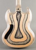 This is a 2009 Gibson Zoot Suit, constructed from multi-ply birch with a carved top—an uncommon and distinctive feature for an SG-style guitar. It has a bit more weight than a traditional SG, but it plays comfortably and sounds fantastic, with excellent sustain and presence. The pickups have been upgraded to Klein pickups, and the knobs and strap buttons have also been replaced. Overall, the guitar is in great condition and comes complete with a Gibson gig bag.