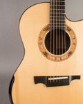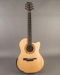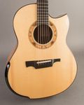 This particular G1 features master grade flamed Koa back and sides, complete with a Laskin-style arm rest in Ebony, and a lovely Moon Spruce top with a spalted beech and paua rosette. The tone is rich and full, and the set up makes for easy playing. This instrument was ordered and has been used by one of the best solo acoustic players we know, and he ordered it for primarily standard tuning, but occasionally for dropped tuning. It's great either way. Currently, it's equipped with a Seymour Duncan D-TAR pickup, and comes with a well-used Hoffee case.