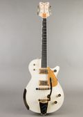 1958 saw Gretsch's venerable Penguin guitar decked out with a pair of Filter'Tron™ pickups, complementing the signature sound of its chambered mahogany body, which magnifies harmonic richness by letting air resonate between the top and body for livelier and more articulate tone. The dual TV Jones® Classic™ pickups on this gorgeous Antarctic baby in Vintage White replicate that unmistakable vintage Filter'Tron™ sound to fabulous sonic effect."