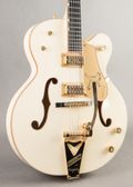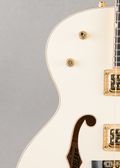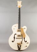 "Of all the legendary Gretsch guitars, the most sought after "dream guitar" is the venerable Gretsch White Falcon. Now, at long last, the '55-era Falcon is once again available in a production model! Features include TV Jones Classic pickups, gold-plated hardware, Grover Imperial machine heads, Pinned Ebony-Based Adjusto-Matic bridge, Bigsby vibrato tailpiece, vertical Gretsch headstock logo, and neo-classic "Thumbnail" inlay position markers. This is a real looker that sounds fantastic."