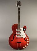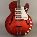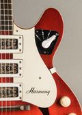 This vintage Harmony Rocket is ready for liftoff! The guitar is in excellent original condition and looks almost unplayed. There's a little checking going on with the paint; other than that it's super clean. The Gold Foil pickups sound killer in this instrument. With the 3 pickup configuration it's easy to channel some great rock, blues or even country tones. It's a very versatile guitar. 1967 was the first year for a truss rod in these things so the neck is easy to setup for perfect play. It comes in it's original chipboard case.