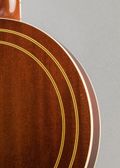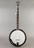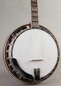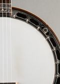 This gorgeous banjo is in excellent condition, with a little play wear and some very light finish checking. While still plenty powerful, it does have a warmth and mellowness as attributed to the mahogany neck. The rich stain on the neck and body, the elaborate MOP inlay, and the shiny hardware give this banjo a beautiful look to match its tone and playability. Comes in a hardshell case and with a Huber leather strap.