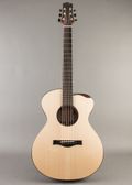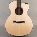 It's always a wonderful day when we receive a new guitar from our good friend and superb luthier Isaac Jang. This guitar is a fabulous example of Isaac's craftsmanship. Featuring Cocobolo back and sides, a Swiss Moon Spruce top, this guitar is articulate, yet rich in tone, with rounded trebles and focused bass notes that bloom so beautifully. Isaac never fails to impress us, not only with his ability to get the most out of any tonewood he uses, but with his design artistry as well. This particular OM has the added details of his Uchida-style bendaway, as well as a Manzer wedge, making this OM as comfortable to play as a much smaller guitar. Rounding out the design details is a set of Rodgers tuners, the most elegant tuners available today (to my eye). This guitar is already spoken for, but we wanted to list it anyway because we love it so much! -k