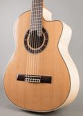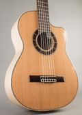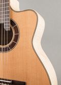 This 2025 José Gomez Classical guitar pairs traditional craftsmanship with a modern, player-friendly design. Featuring a cedar top and maple back and sides, it offers a wide, open tone—clear and balanced with a lively response across the register. The cutaway provides easy access to upper frets, making it especially comfortable for contemporary styles and extended range playing. Its neck feels smooth and responsive, inviting a natural, expressive touch. In great shape overall, this instrument combines warmth, projection, and playability in a refined and engaging package. Comes with a HSC.