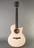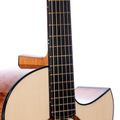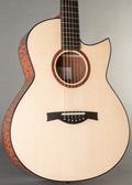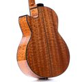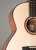 When it comes to designing his guitars, Irish luthier Drew Lowry starts with familiar dimensions—in this case, the mid-sized OM—but then reimagines them with curvier lines, a different waist shape, and clean aesthetics. This Carrick, named after a prominent landmark on the Co. Antrim coastline of Northern Ireland, was specifically designed with the fingerstylist in mind. Beautiful quilted sapele, related to mahogany, provides the focus and mid-range, but the AAA-grade Swiss moon spruce top and Drew's curvaceous design ensure a complexity and nuance you might normally associate with rosewood. Played softly or with a hard attack, this guitar provides a wide tonal palette to access for many playing styles.