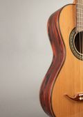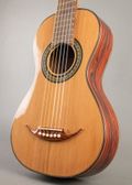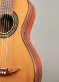 Made in Paracho, Mexico, this small-bodied classical guitar delivers a surprisingly full and rich tone for its size. The cocobolo back and sides paired with a Sequoia redwood top create a warm, resonant voice with clear note separation and a responsive touch. Its hand-filling neck profile is substantial yet comfortable, offering a solid feel without sacrificing playability. The compact body is easy to navigate, making it an inviting instrument for extended playing. Exceptional craftsmanship and thoughtful wood selection come together in a guitar that feels as good as it sounds. Comes in a very nice Alhambra Gig Bag.