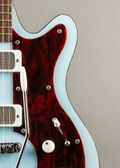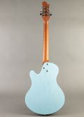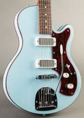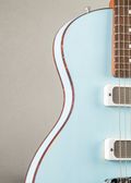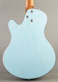 This Malinoski Saturn Custom from the 2010s comes in a striking satin Sonic Blue finish that suits its uniquely sculpted design. Outfitted with foil-style pickups and a jazzmaster/jaguar type tremolo system, it delivers a tone and response reminiscent of vintage Stratotone-style guitars—airy, microphonic, and full of character. The build quality and feel are distinctly Malinoski, with a lightweight body and contours that make it comfortable and responsive. Its tonal palette leans into the raw and expressive side, with a clarity that cuts through while still feeling warm and textured. A singular instrument with a voice and aesthetic all its own. Comes with a gig bag.