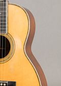 This 1926 Martin 00-42 is a stunning pre-war example of the company’s ornate 00-size design, featuring a spruce top with clean Brazilian rosewood back and sides and Style 42 pearl appointments. The 12-fret body places the bridge closer to the center of the lower bout, contributing to a round, balanced response. Over time the guitar has received several necessary repairs, including a neck reset, fret level, shimmed nut, a bridge reglue, and a reglue of the treble-side back upper bout. A small back crack on the bass side middle has been reglued, and a crack in the treble-side slot has also been repaired. The instrument remains exceptionally clean for its age overall. Visible wear includes a small puncture in the top on the bass side lower bout and some notable scrapes along the bass side of the back.