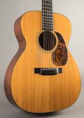 This 1938 000-18 is a remarkably rare piece with unrivaled pre-war Martin tone. The mahogany back and sides have been refinished, while the spruce top shows an overspray that preserves its original character beneath. The guitar has seen a number of repairs, including a neck reset, refret, replaced nut and saddle, and a reglued bridge plate. Additional work includes a replacement bridge and pickguard, with the neck refinished and the headstock veneer oversprayed. A spruce tear beneath the fingerboard extension has been reglued, ensuring stability. With its careful restoration, the instrument remains a strong representative of Martin’s golden era, with astounding clarity and excellent playability.