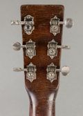 This 1938 Martin 000-18 is a heavily played pre-war workhorse with loads of character and a fantastic voice. It wears its age honestly: heavy finish wear and checking, areas of chipped lacquer, and multiple repaired top cracks, along with a non-original bridge and newer frets. Despite the cosmetic wear, it’s structurally solid and ready for many more years of playing. In the hands it feels lively and responsive, and it both sounds and plays fantastic—delivering that dry, woody, articulate pre-war 000 tone that’s hard to replicate. Comes with a HSC.