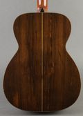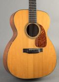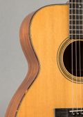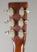 This 1938 000-21 has undergone a handful of repairs and modifications while still retaining the soul of a coveted pre-war Martin. The most notable modification was a re-top in the 1950s (50's pickguard and tuners help us date this work). It has undergone a full refinish as well. Repair work includes a neck reset, bridge replacement, refret, replacement bridge plate. A long crack extending from below the high-E string to the bottom of the guitar has been repaired with 4 maple cleats and there is a football-shaped patch on the treble side bottom as well as three holes plugged on the headstock veneer.
